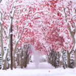 今朝(11/8)、平岡樹芸センターで雪と紅葉のコラボを撮って来ました。