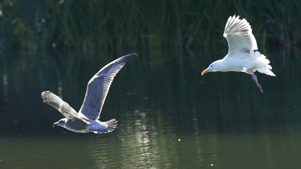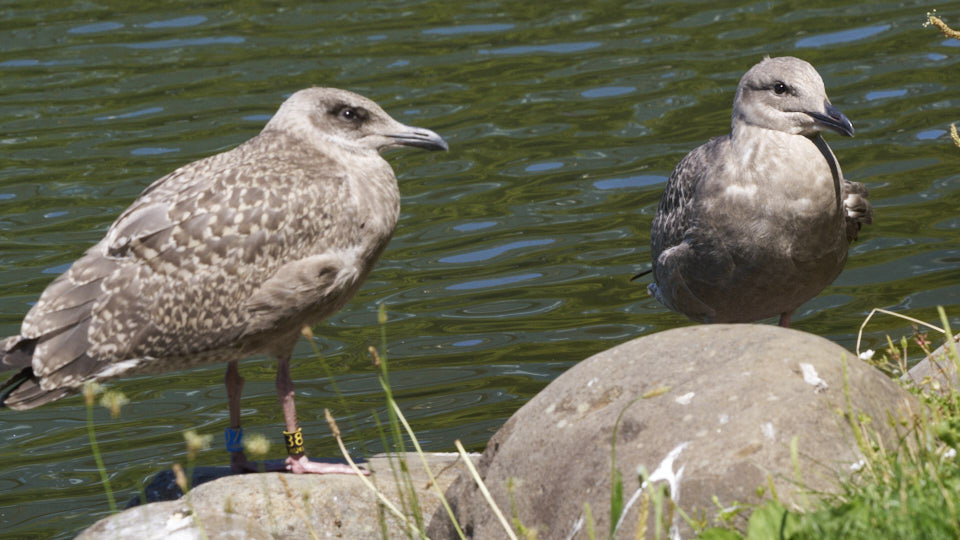 12:00頃、オオセグロカモメの幼鳥は、2羽一緒にいました。