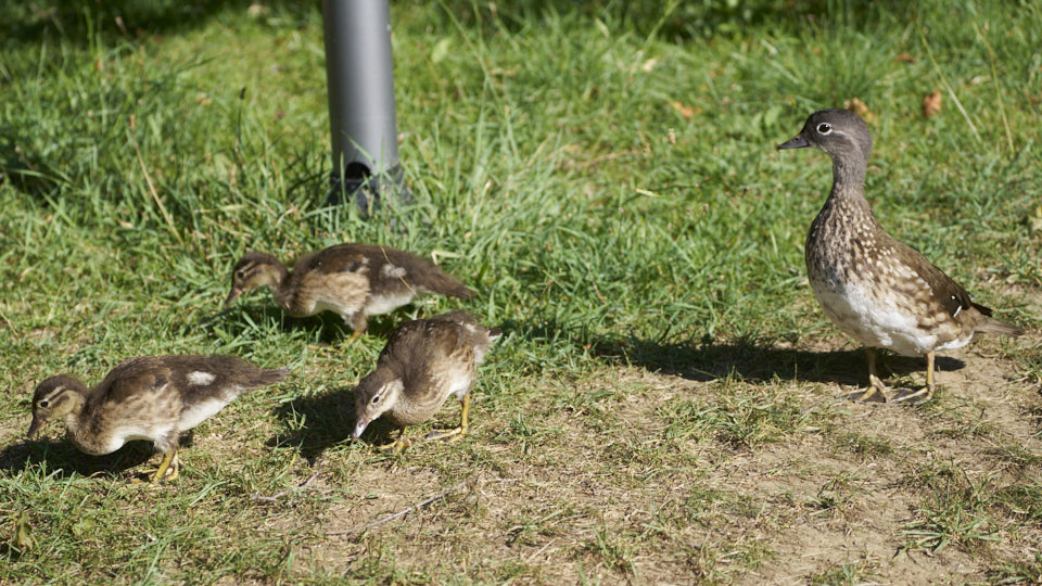 2025年8月16日 オシドリ5組目ヒナ3羽と母鳥