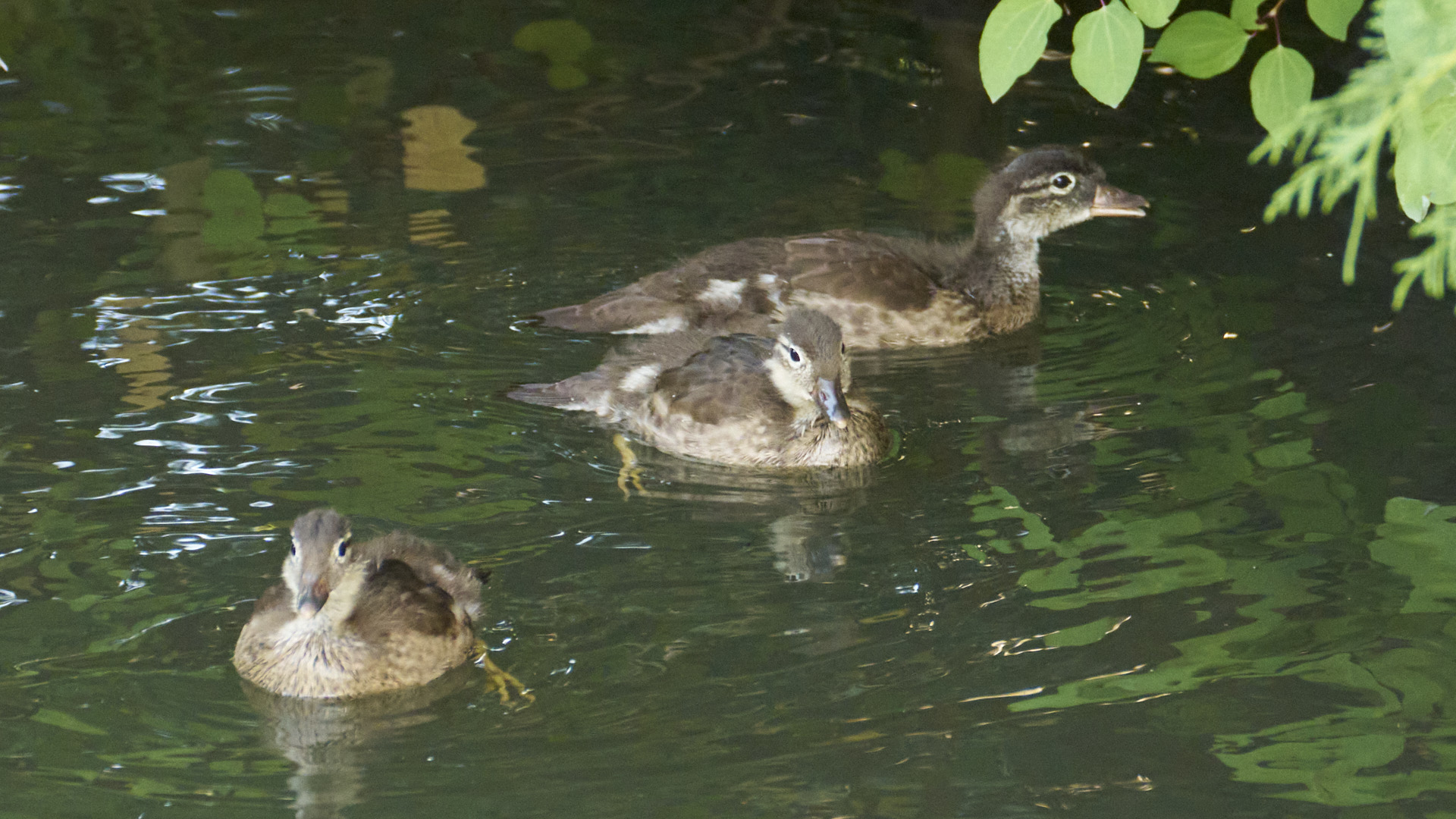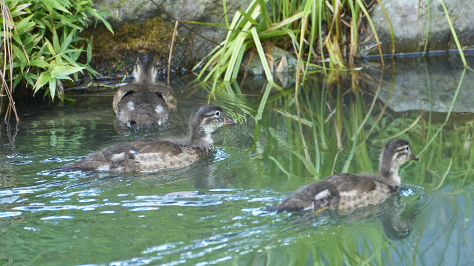 ヒナ3羽がピーピー鳴きながら池をウロチョロしていました。1時間ほど追跡しましたが、母鳥は現れませんでした。以前、生まれて数日のヒナを置いて出掛けていた母鳥なので、いずれ戻ってくると思います。