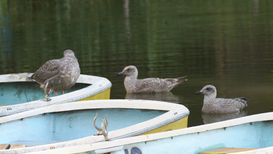 7:18 昨日まで2羽だったオオセグロカモメの幼鳥が3羽いました。