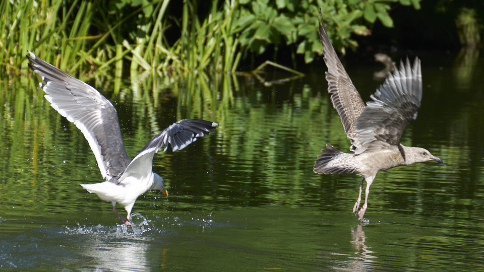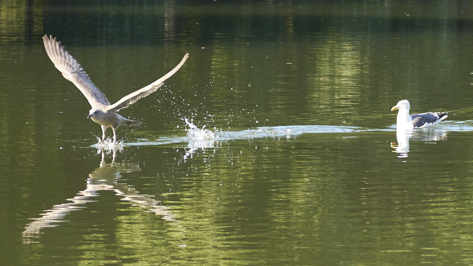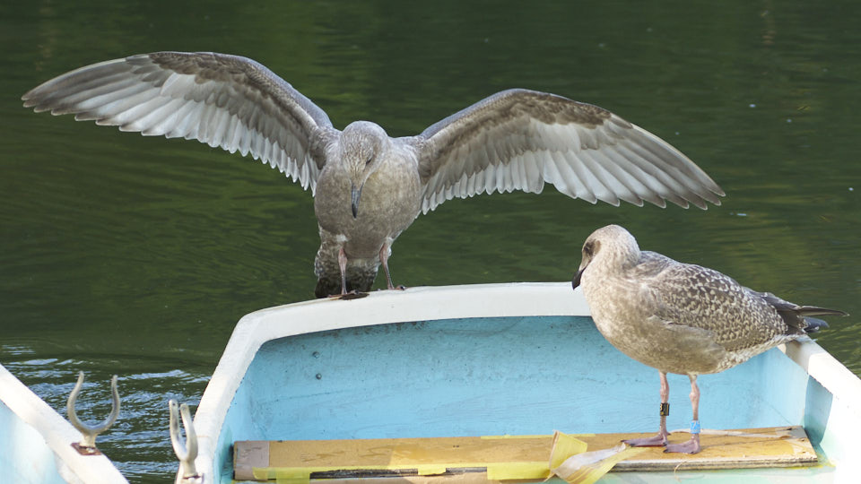 2025年8月18日 / 最終更新日時 : 2025年8月19日 fmatsu 野鳥 カモメの幼鳥1羽出現(8/18) 8月18日朝、菖蒲池に留まっているオオセグロカモメの幼鳥2羽とは別の幼鳥が現れました。成鳥に何度も追い立てられ、30分ほどで菖蒲池を去りました。 6:54 幼鳥が飛び回っていたので、撮影しましt。撮影している時は気が付かなかったのですが、この時既に幼鳥が3羽いました。 6:56 成鳥が幼鳥を追い出そうとしていました。今まで、成鳥が幼鳥をここまで激しく追い立てるところを見たことはなく、おかしいなと思っていました。 6:58 成鳥の真似をしたのか、今度は幼鳥が追い立て様としていました。おかしいと言う思いは決定的なものになりました。 6:58 幼鳥が幼鳥を攻撃しました。逃げ出した幼鳥には足環が付いていない様なので、幼鳥が3羽いると考えました。 7:19 幼鳥2羽がボートでくつろいでいる時、3羽目の幼鳥がやって来ました。両サイドの2羽には足環が付いています。 7:19 幼鳥3羽目はやはり足輪が付いていません。 7:20 この後、幼鳥3羽目は菖蒲池に降りました。 7:22 成鳥に追い立てられる幼鳥 7:24 何度も成鳥に追い立てられる幼鳥 7:26 これが最後の追い立てになりました。 7:26 幼鳥3羽目は思わず飛び上がり、 このまま菖蒲池から去って行きました。