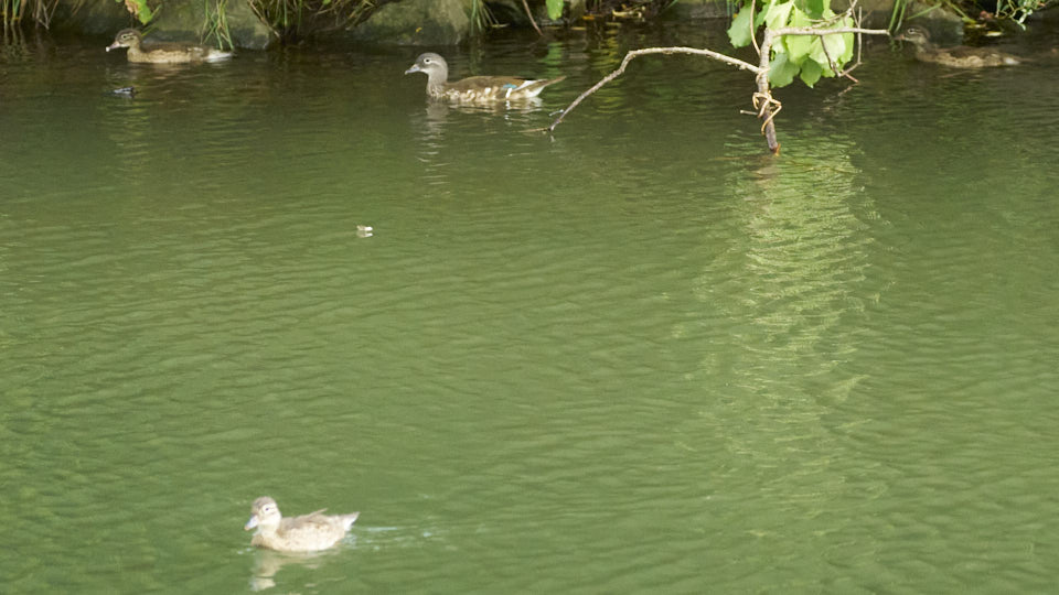 2025年8月19日 / 最終更新日時 : 2025年8月19日 fmatsu 野鳥 中島公園のヒナ達(8/19) 今日のオシドリ5組目の様子です。 昨日は母鳥がヒナ3羽を置いて、いなくなっていましたが、今日はみんな一緒でした。相変わらずヒナ1羽は、少し離れていることが多いですが・・・ 2025年8月19日 オシドリ5組目ヒナ3羽と母鳥 2025年8月19日 オシドリ5組目ヒナ2羽と母鳥 残りのヒナ1羽は、少し離れたところにいました。 【カモメの幼鳥】 2025年8月19日 オオセグロカモメの幼鳥2羽 幼鳥2羽は一緒に行動したり、離れたりを繰り返していました。 2025年8月19日 オオセグロカモメの成鳥と幼鳥
