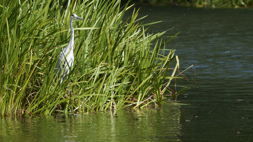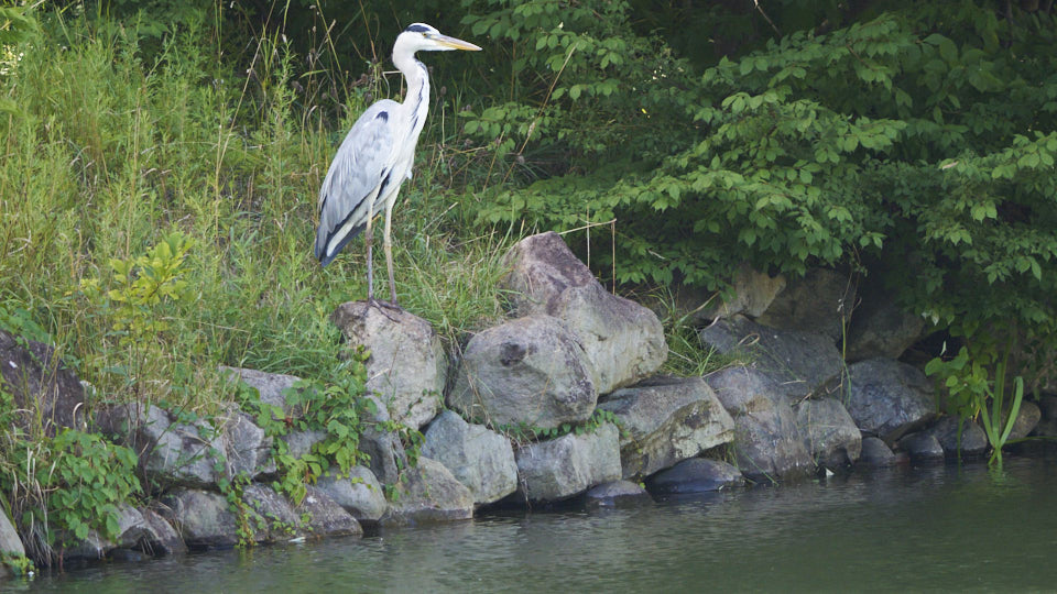 菖蒲池北側でたたずむアオサギ1羽目です。