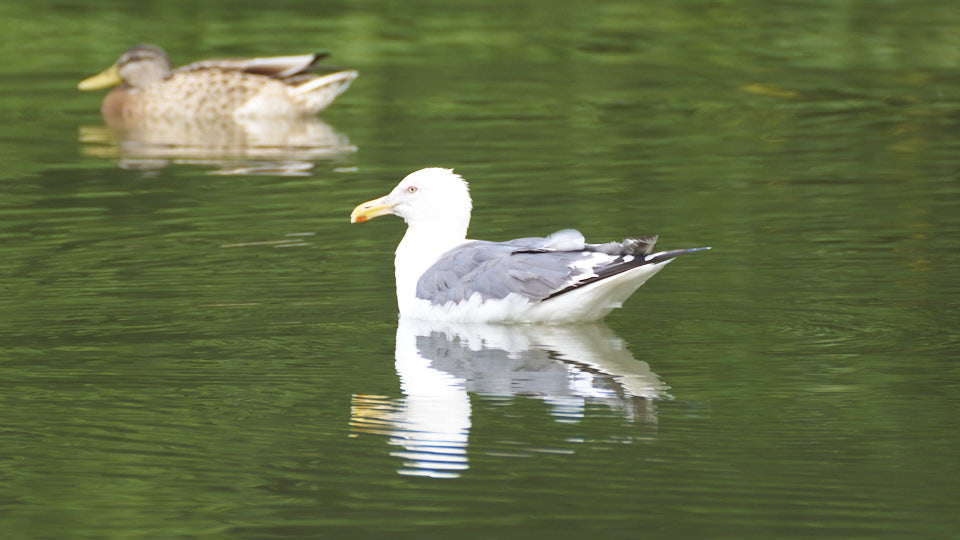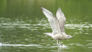 9:10過ぎ、菖蒲池北側からカモメの幼鳥の鳴き声が聞こえました。直ぐに鳴き声のした方に向かったところ、ちょうど南方向へ飛んで行く、オオセグロカモメの幼鳥を撮れました。この写真を撮った直後、そのまま菖蒲池から立ち去りました。