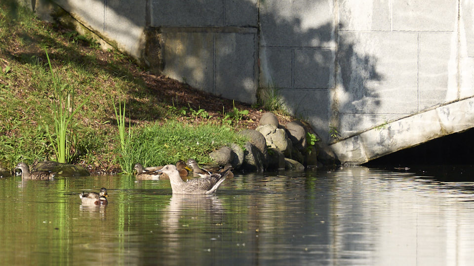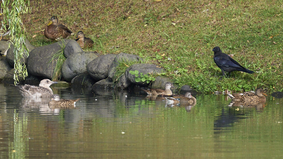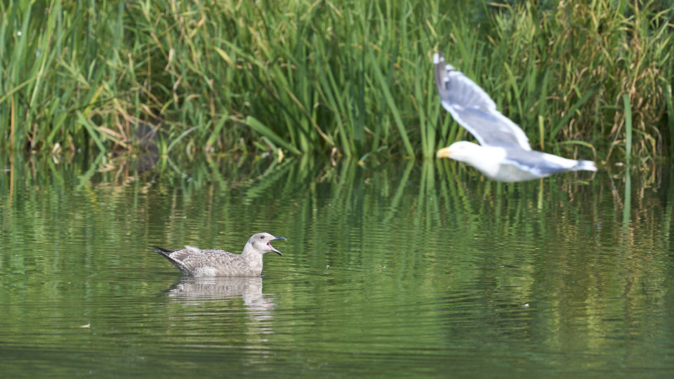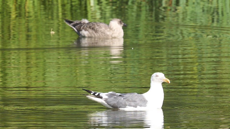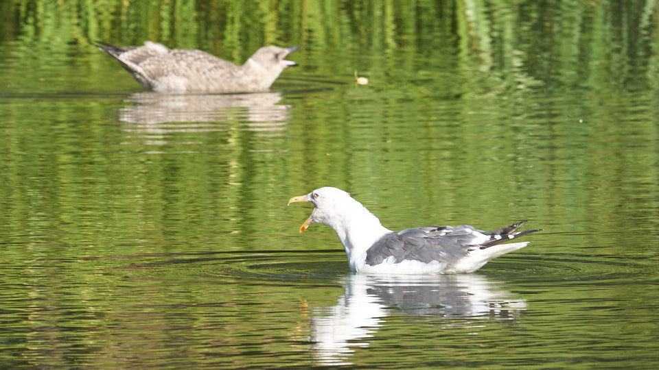 オオセグロカモメの幼鳥は今日も中島公園に現れました。確認出来ただけで約1時間菖蒲池にいました。今回も右足環が青の幼鳥でした。