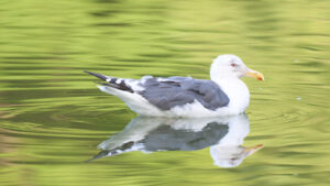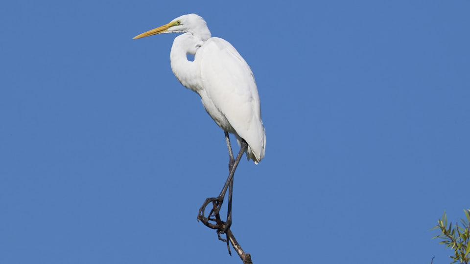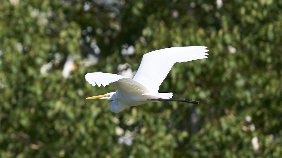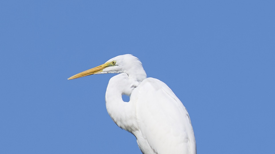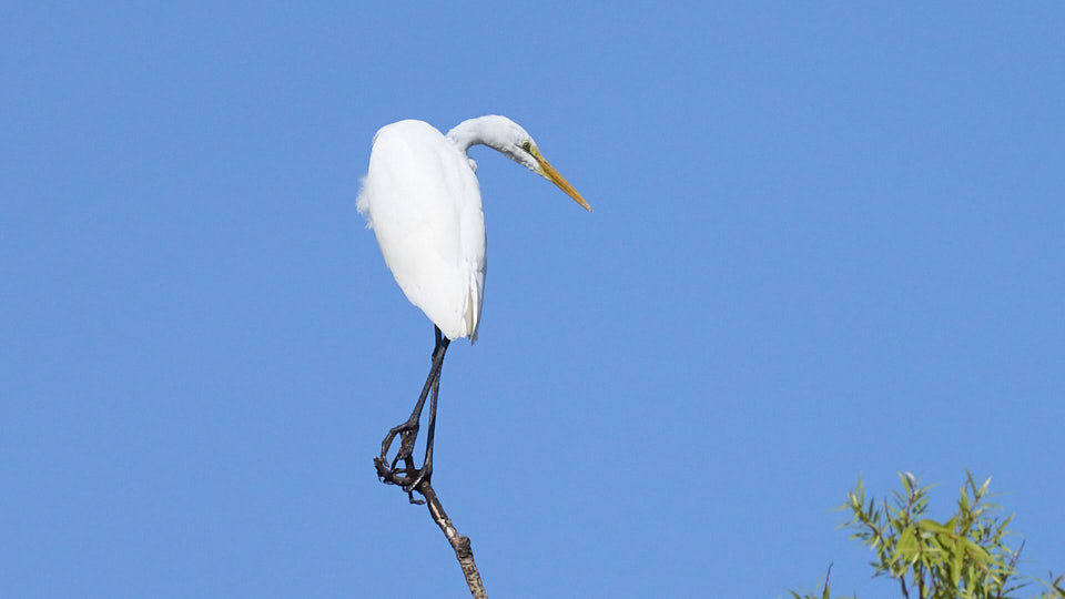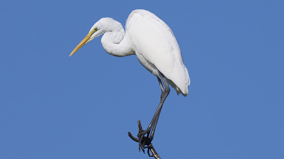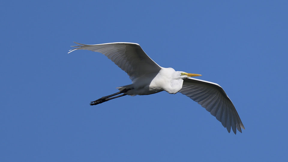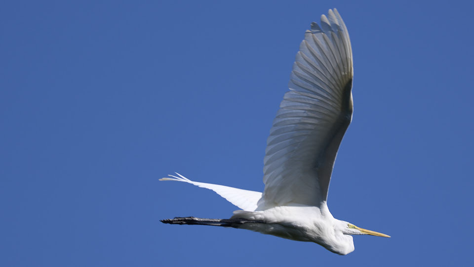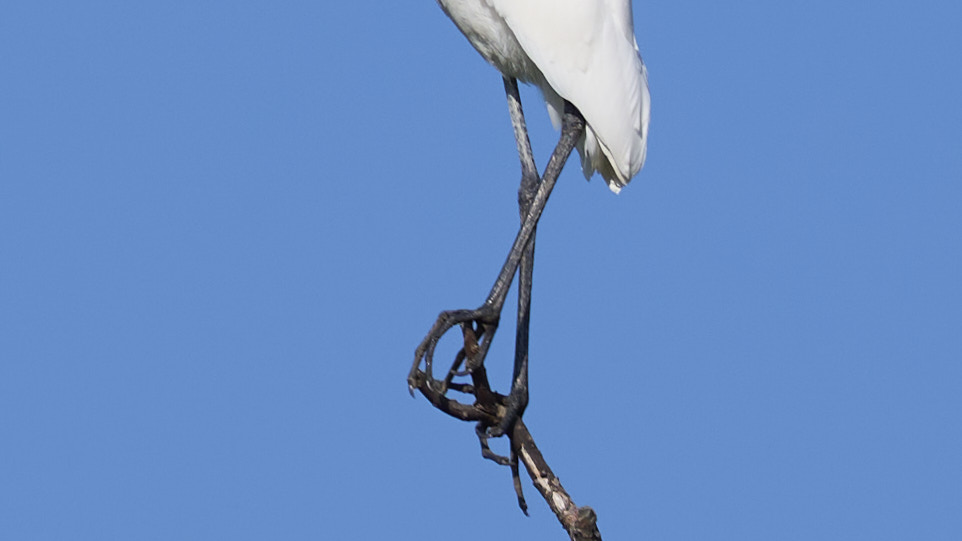 ダイサギ: 全体に黒っぽいが、根本は黄色っぽい。