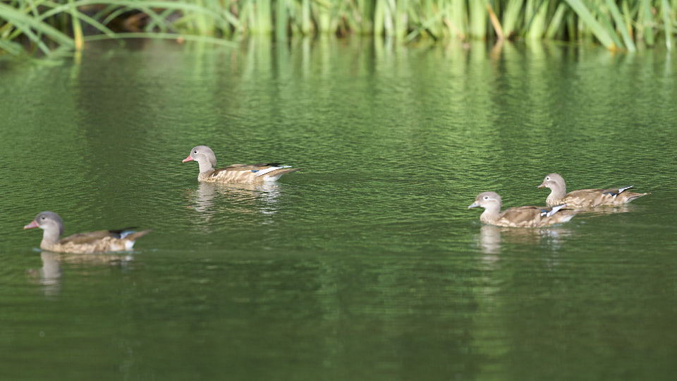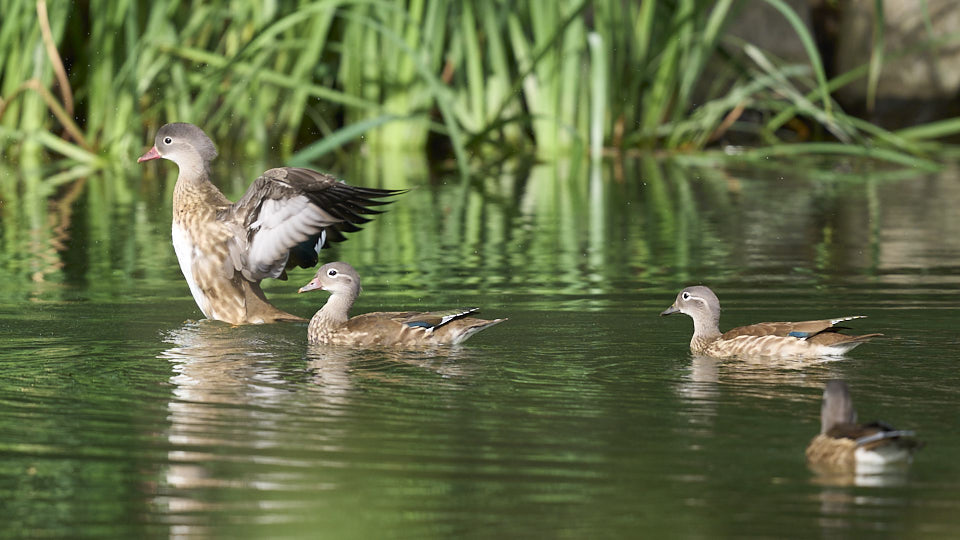 見えるところに出て来ている鳥はいつもより少ない感じでしたが、オシドリの小さな集団だけはあちらこちらで見掛けました。