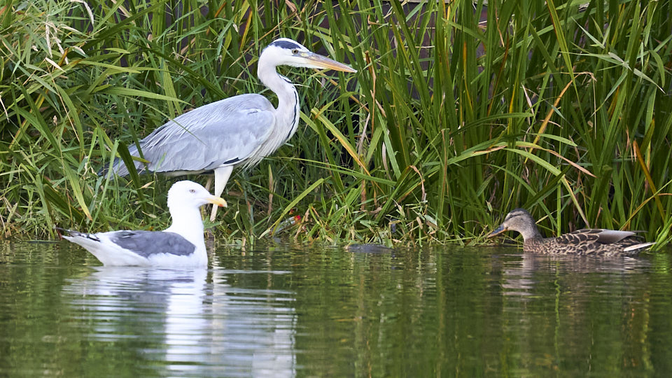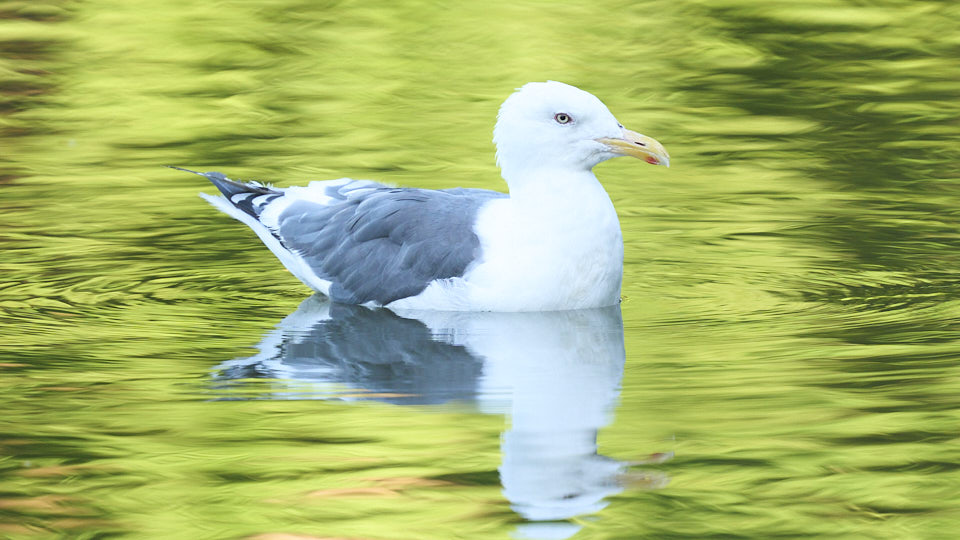 15:03 菖蒲池を泳ぐカモメの幼鳥を発見
