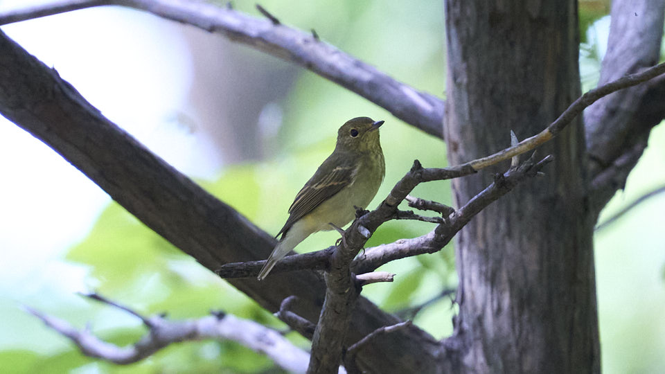 8:55 日陰で逆光なので、かなり写りが悪いですが、キビタキのメスの様です。
