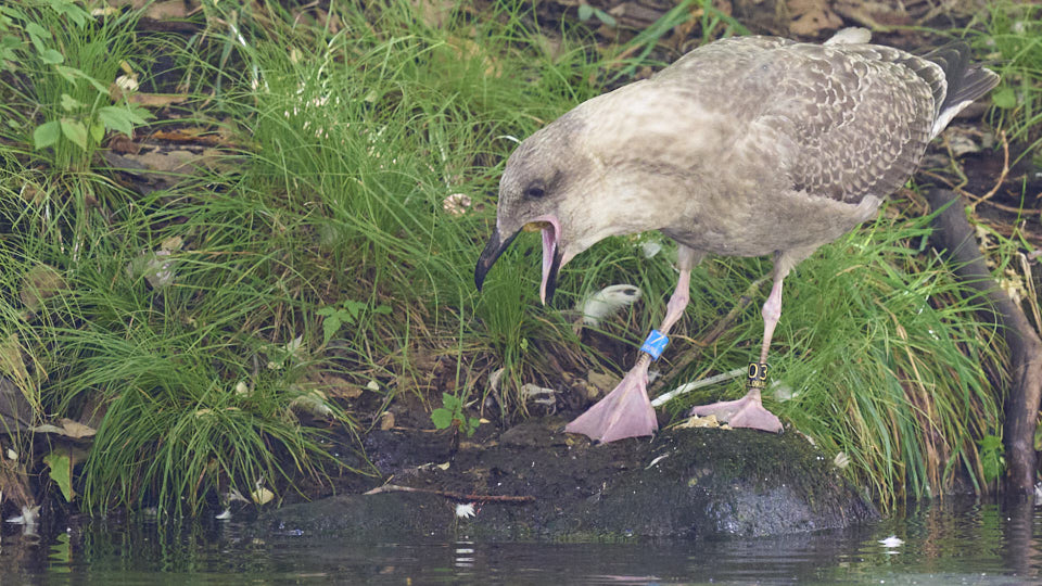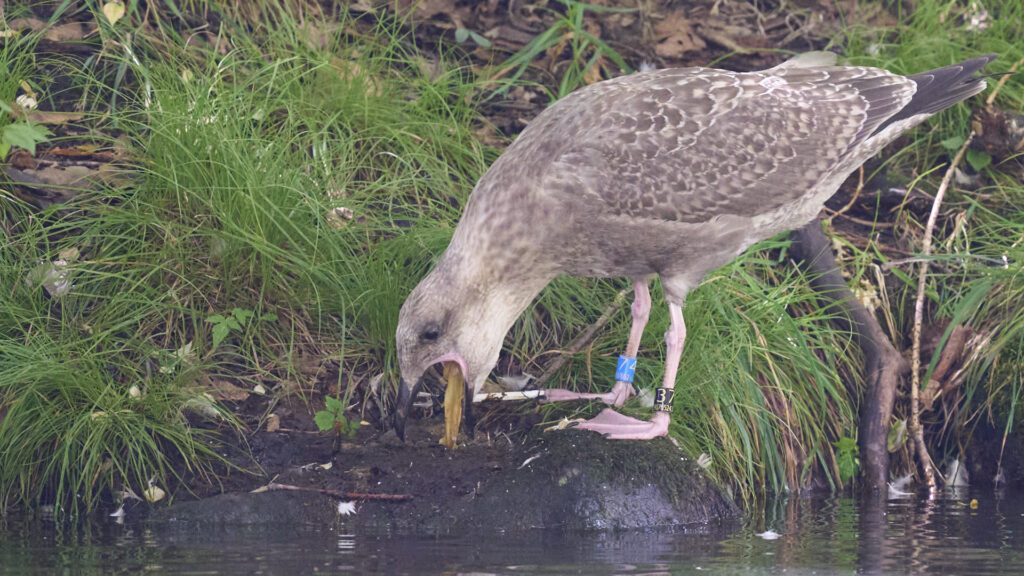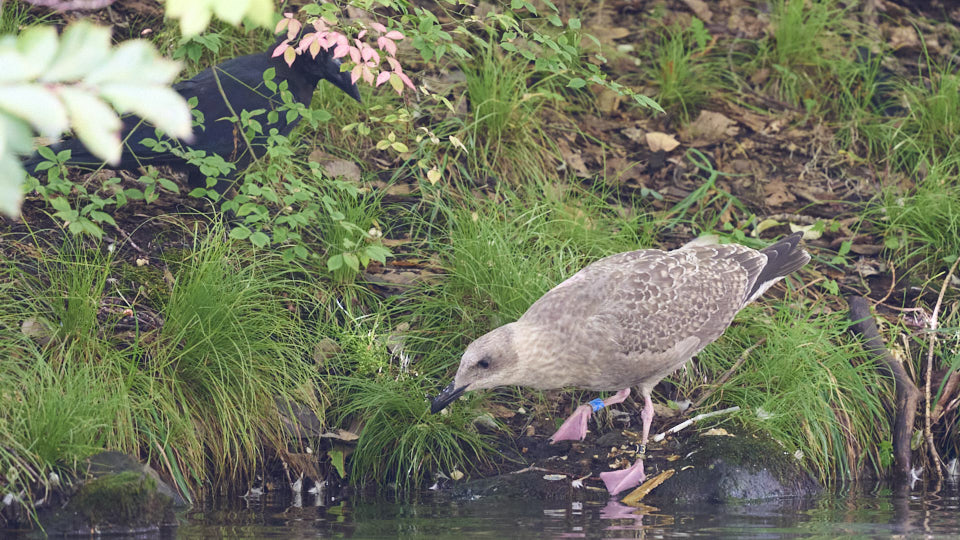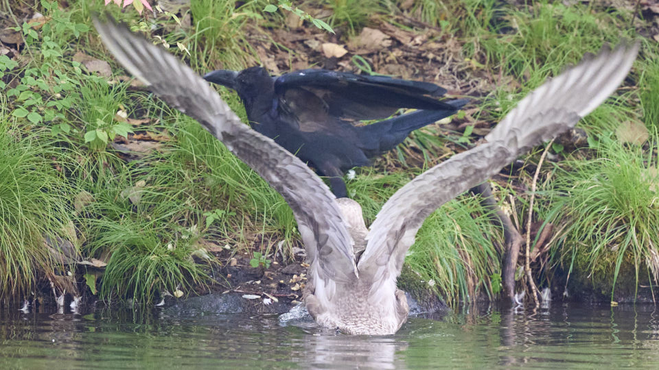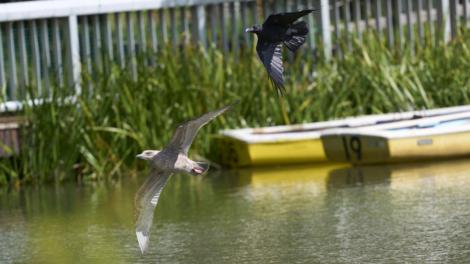 幼鳥が離れた時、カラスが吐き出したもを獲ろうとしましたが、気付いたカモメは戻って来てカラスを追い払いました。