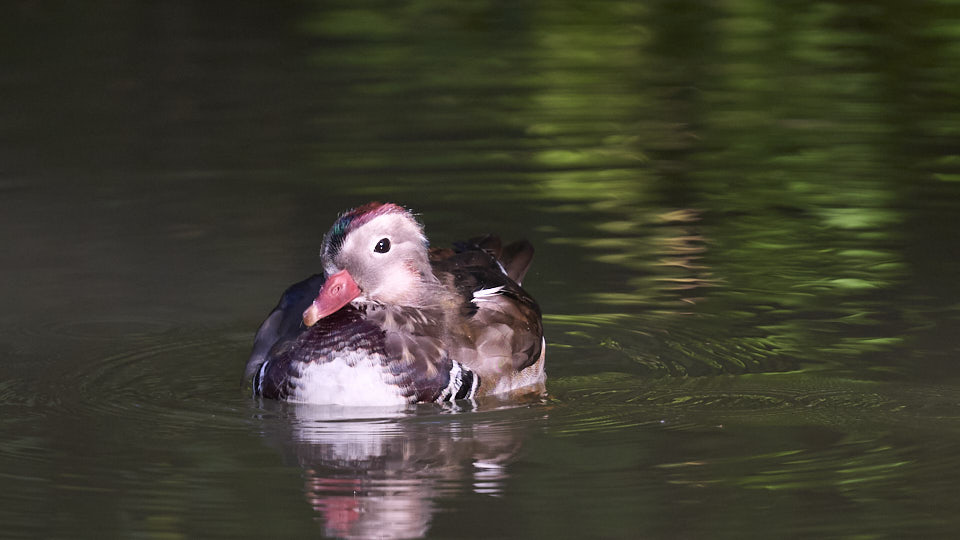 アオサギのいた島の横でオシドリが数羽泳いました。エクリプス1羽はだいぶオスの姿に近づいていました。