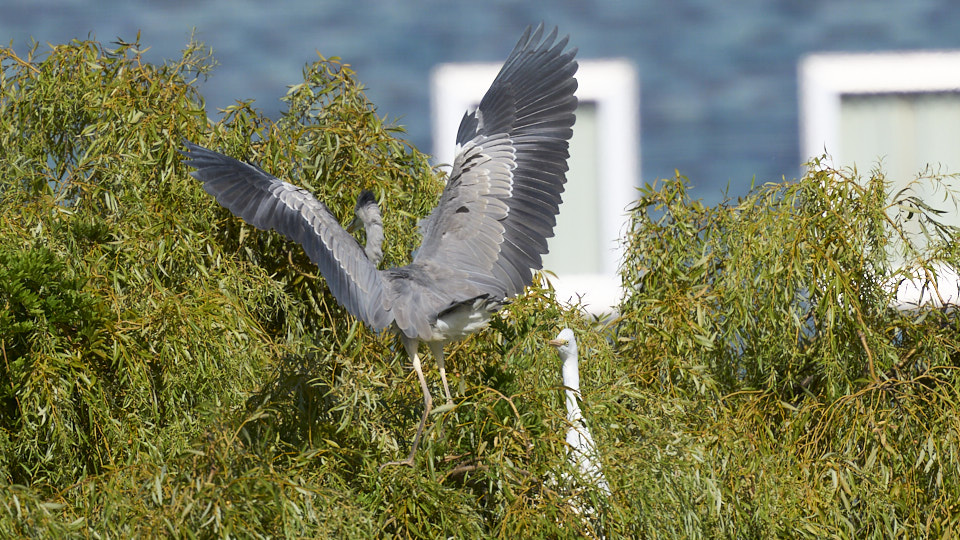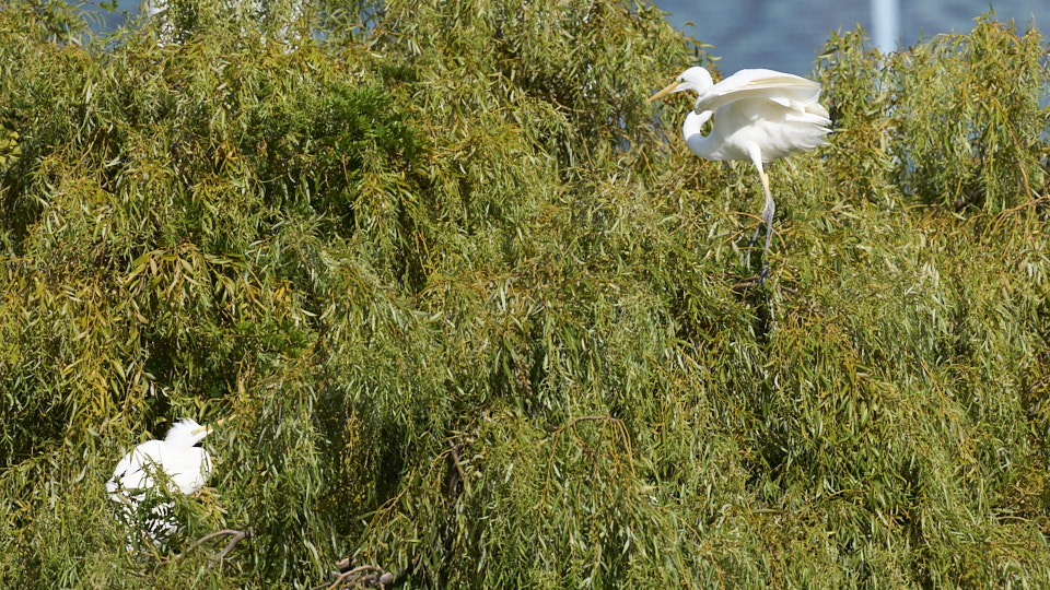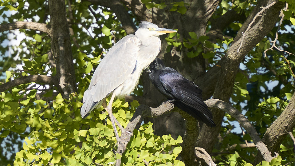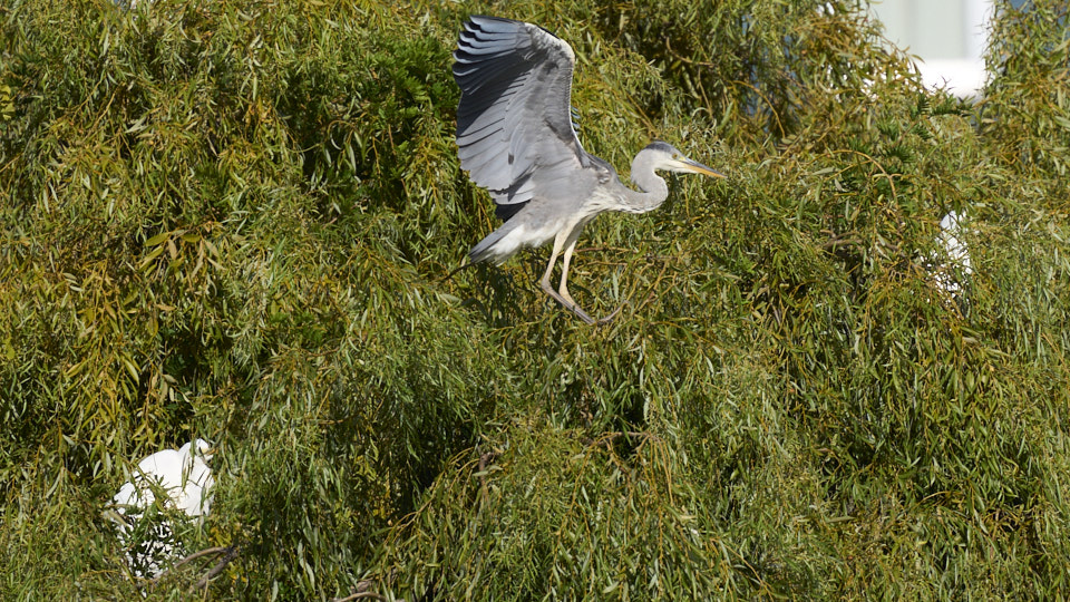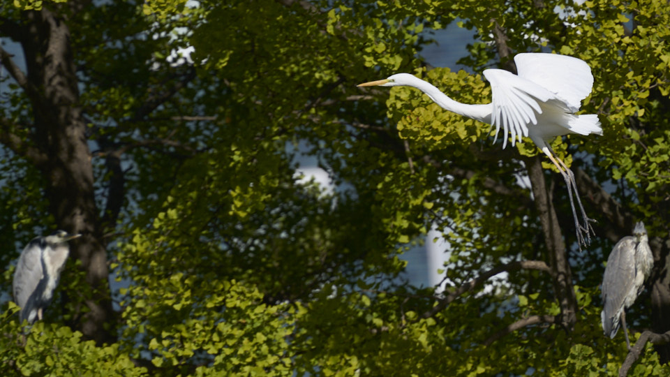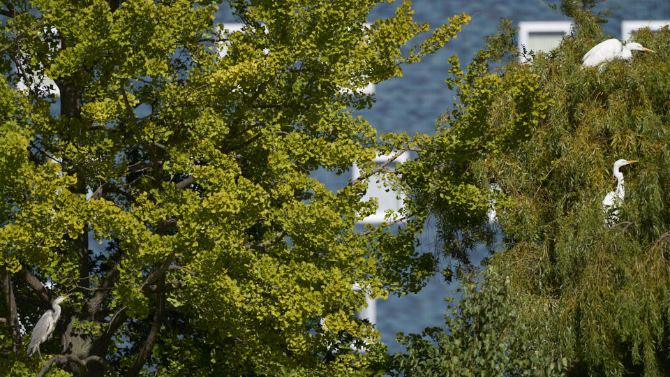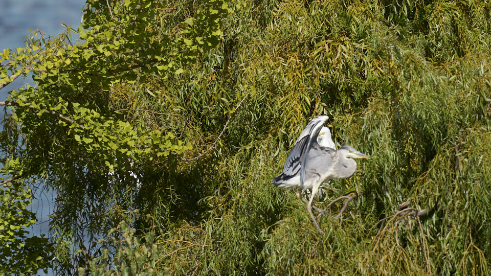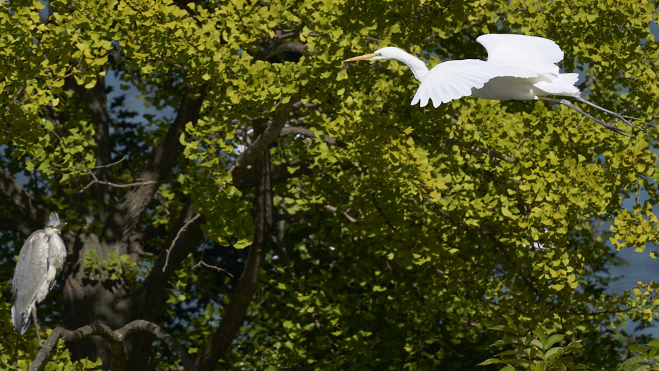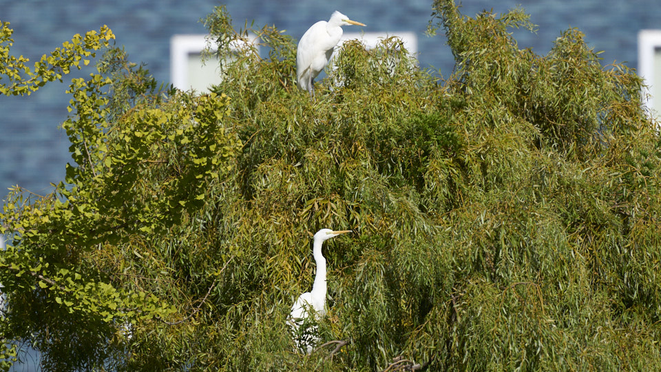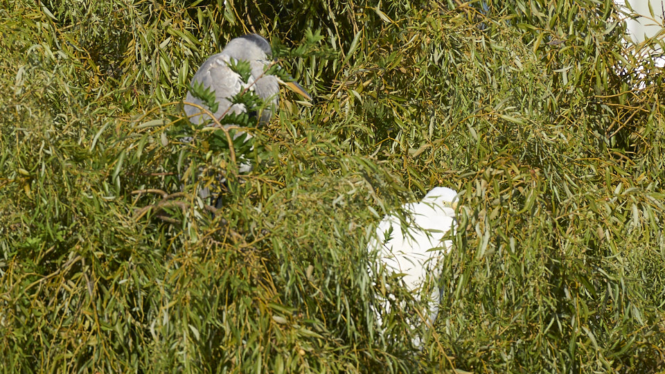 2025年10月9日 / 最終更新日時 : 2025年10月10日 fmatsu 野鳥 ダイサギとアオサギ(10/9) 本日午後、中島公園の菖蒲池にダイサギ2羽とアオサギ1羽が集っていました(13:20発見)。 その後、アオサギ1羽が現れ、ダイサギ•アオサギそれぞれ2羽になりました。 ダイサギ2羽(右端)とアオサギ1羽(左下)を発見(13:20) 右側の木で休んでいるダイサギ2羽。上にいる方をダイサギ(上)、下にいる方をダイサギ(下)とします。 左側の木で休んでいるアオサギ ダイサギ(上) ダイサギ(下) アオサギ(灰色が薄く、頭もボソボソなので、若鳥の様です)。 ダイサギ(上)が飛びました。アオサギ(若鳥)の前を通り過ぎるところです(13:45)。 アオサギも2羽いました。 飛行中のダイサギ(上) ダイサギ(上)は、結局元のいた場所のちょっと右に戻って来ました。 左側の木にとまっているアオサギ2羽です。右端が元々いた若鳥です。 アオサギの若鳥 新たに出て来た成鳥です。親鳥かもしれません。 カラスが若鳥(アオサギ)にちょっかいを出していました。 若鳥はたまらず隣の木に移動しましたが、なぜかダイサギ(下)の前にいます。 若鳥は更に移動 なぜかダイサギ(上)の方へ ダイサギ(上)のそばに降り立ちました。 若鳥はダイサギ(上の)斜め上でくつろいでいました。 観察をやめるまで(15:20)、ダイサギ2羽と若鳥(アオサギ)は一緒に休んでいました。若鳥の直ぐ下の草の隙間に見える白が、ダイサギ(上)です。 アオサギ(成鳥)は、相変わらず隣の木にとまっていました。