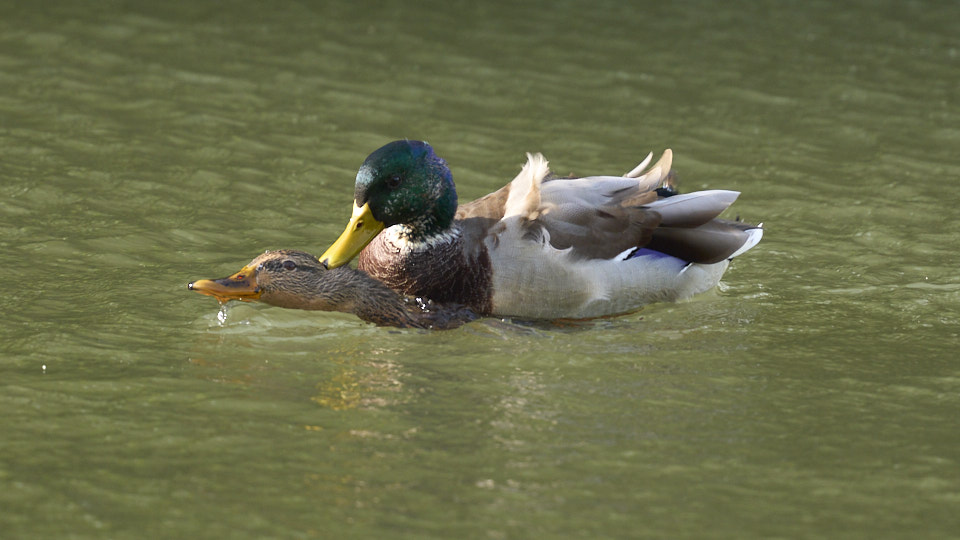 【マガモの求愛】オシドリ大集団の後は、マガモの求愛行動を見掛けました。