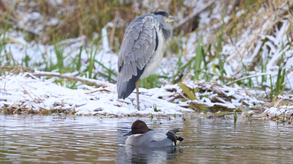 2025年11月18日 / 最終更新日時 : 2025年11月18日 fmatsu 野鳥 今日の中島公園(11/18) 今朝、中島公園で見掛けた野鳥です。 昨日菖蒲池に現れたヨシガモは今朝もいました。 菖蒲池全体で、マガモはざっくり20羽程度いたと思います。 7:00 アオサギ発見 7:32 ダイサギ発見 ダイサギ(左)とアオサギ(右) 7:06 ヨシガモ発見(二日連続出現) アオサギの前を横切るヨシガモ 二日連続で菖蒲池に現れたヨシガモ 菖蒲池のヨシガモ 菖蒲池のヨシガモ 菖蒲池のヨシガモ 菖蒲池のマガモのつがい ざっくりマガモは20羽程度いたと思います。 菖蒲池のマガモのつがい