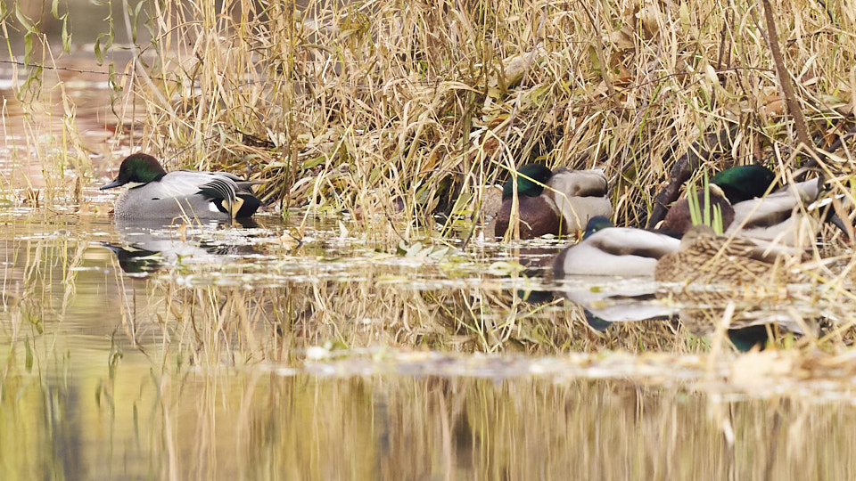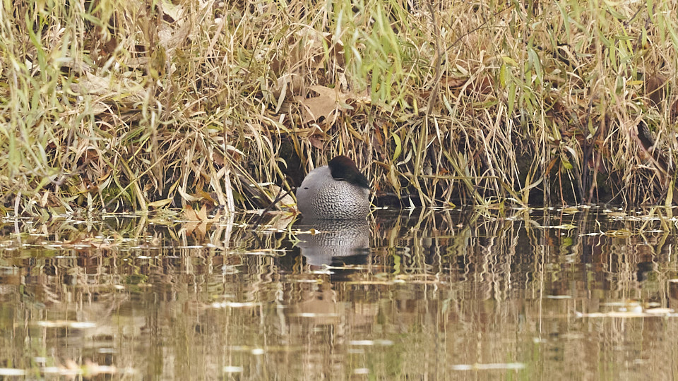 11月17日に現れたヨシガモは今日もいました。寝てばかりでしたが、帰宅間際に池を泳ぎ始めました。