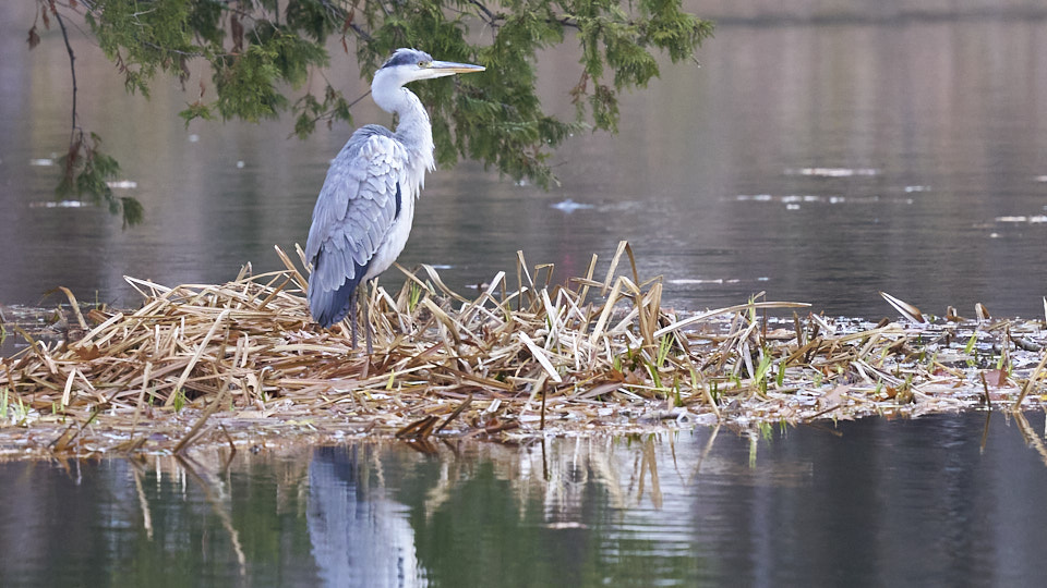 菖蒲池で休むアオサギ