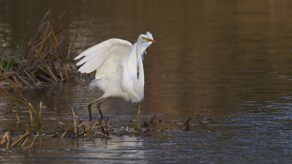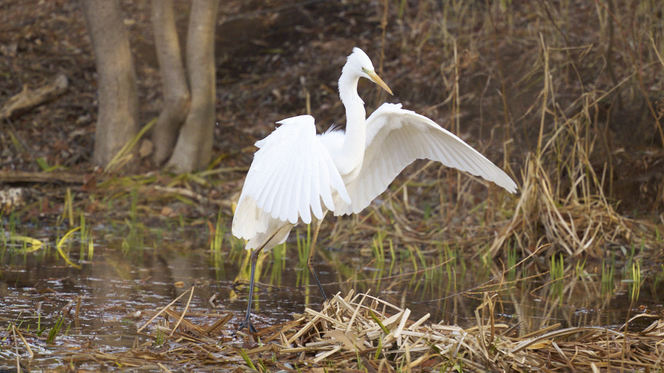 菖蒲池を移動するダイサギ