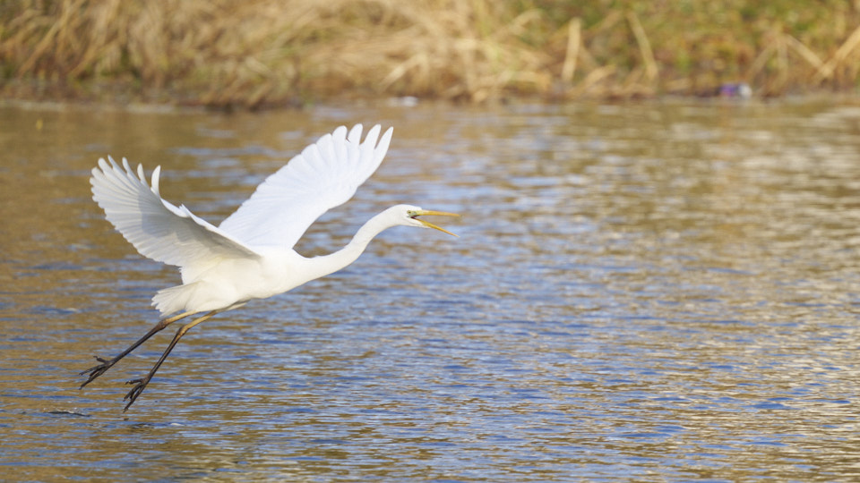羽ばたくダイサギ