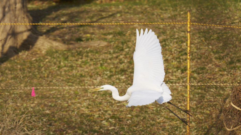 飛行中のダイサギ