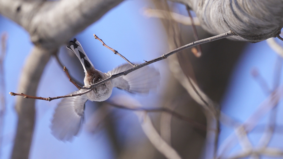 移動中のシマエナガにしては長い時間留まってくれましたが、大きな木の上の方にいたので、気にいる様な写真を撮れませんでした。