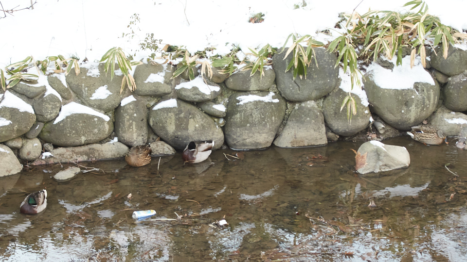 マガモは、白鶴橋付近の写真に写っている6羽含め10羽程度しました。