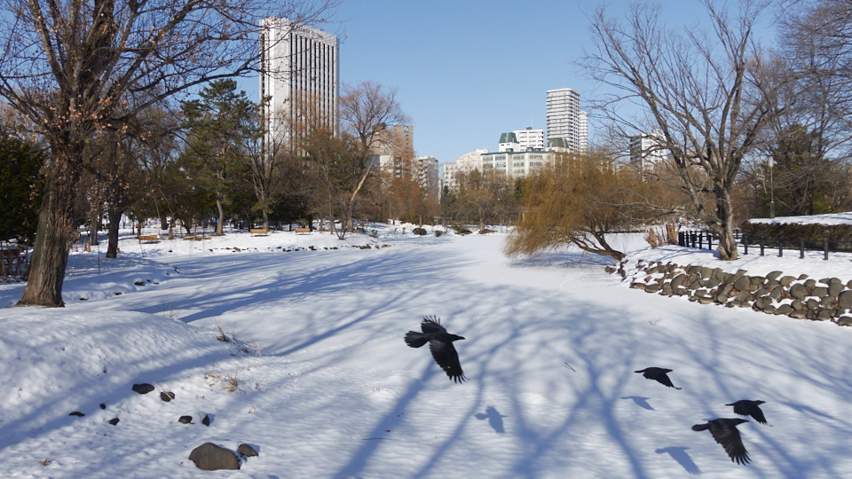 今朝、中島公園で見掛けた野鳥と園内の様子です。