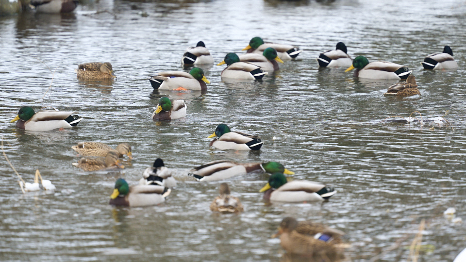 鴨々川に集まるマガモ