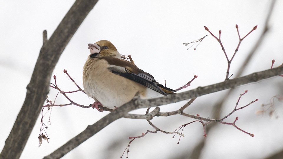 2026年1月24日 / 最終更新日時 : 2026年1月26日 fmatsu 野鳥 ウソ祭り(1/24) 今朝、30分以上ウソを撮影できました。オス3羽、メス1羽が同じ場所に止まってくれました。長時間上を見続けた為、首が疲れました。 中島公園のウソ(オス) 中島公園のウソ(オス) 中島公園のウソ(オス) 中島公園のウソ(メス) 中島公園のウソ(メス) 中島公園のウソ(メス) 桜の花芽を食べるウソ(オス) 桜の花芽を食べるウソ(メス) 中島公園のウソ(オス・メス) 【ウソ祭り経緯】 9:45 ウソ撮影開始。オスは3羽いました。 9:47〜9:50 背後にいたシメを撮影 9:50 ウソ撮影再開 9:53 メスが1羽いることを確認 9:58 少し晴れてきました。 10:03 晴れました。 ウソ(オス) 飛んだ! ウソ(メス) 飛んだ! 10:20 4羽根とも飛び去り、ウソ撮影終了