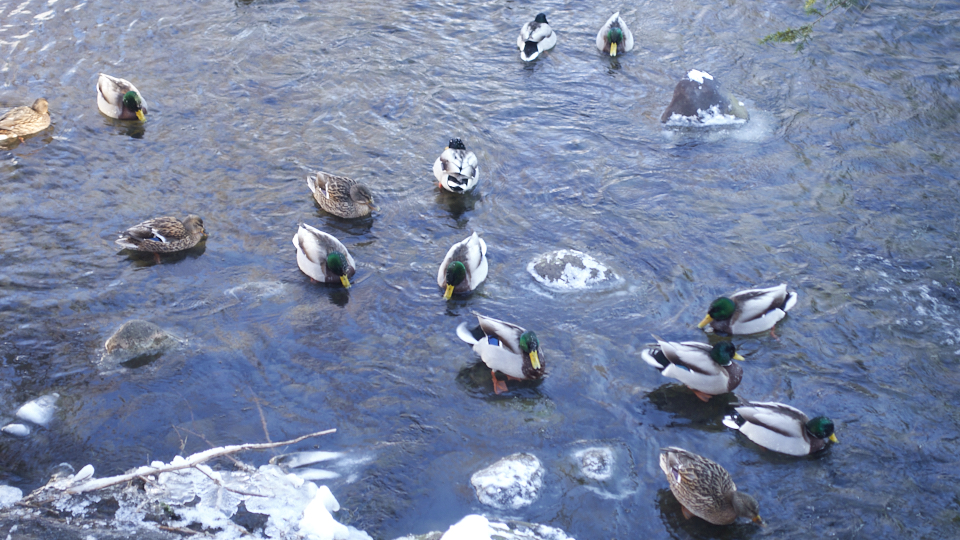 マガモは、白鶴橋付近に4、5羽いました。久しぶりに幌平橋駅付近を確認したところ、50羽以上いました。