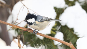 シマエナガが去った15分後、同じ木にとまりましたが、3分間で飛び去りました。