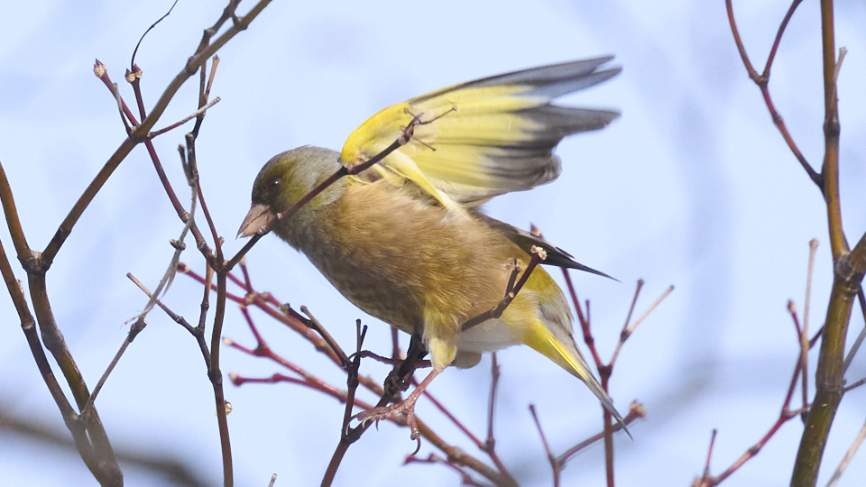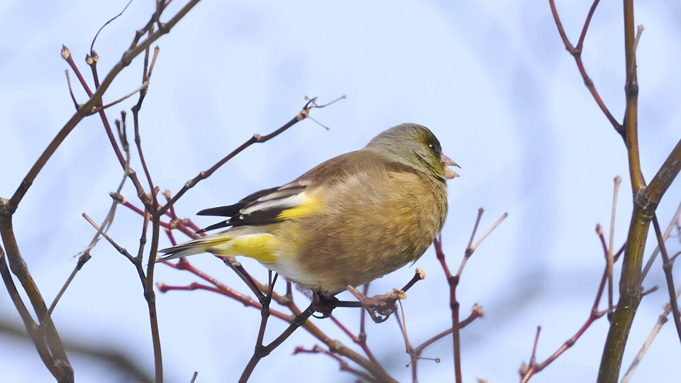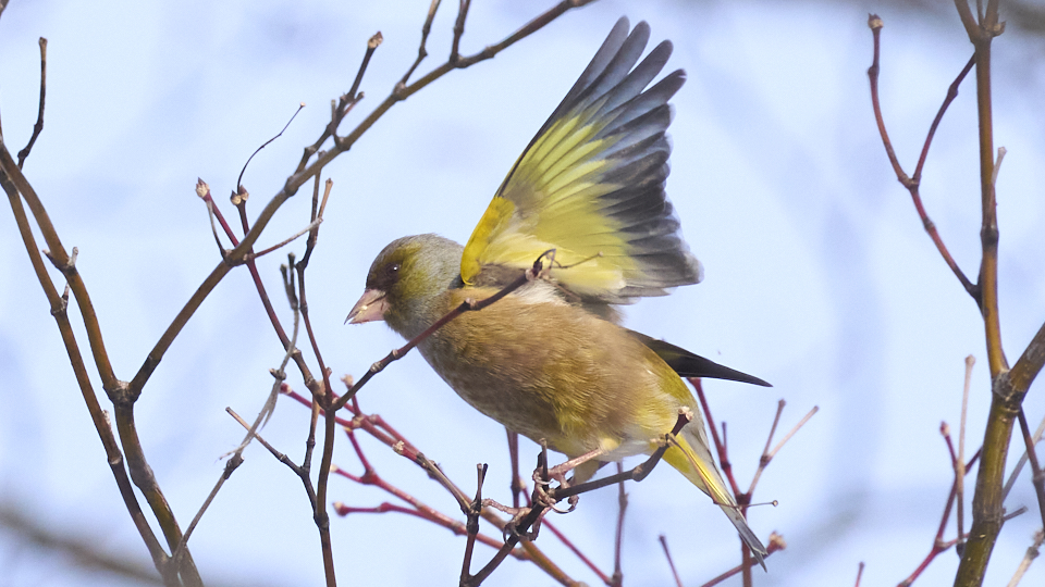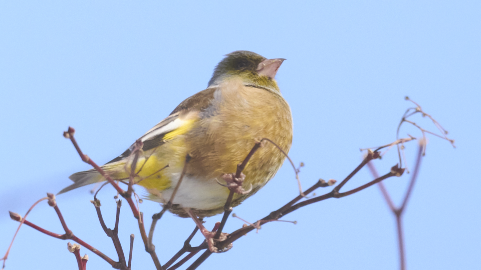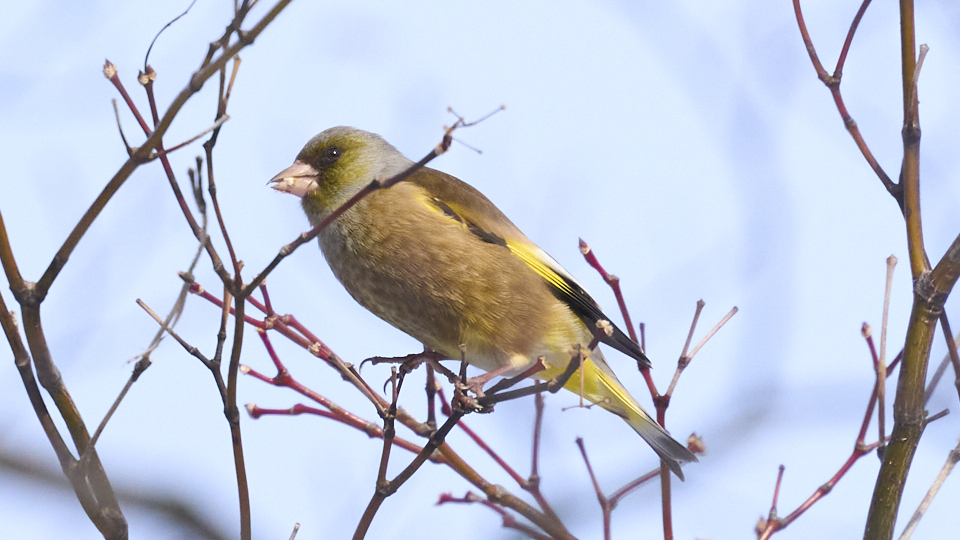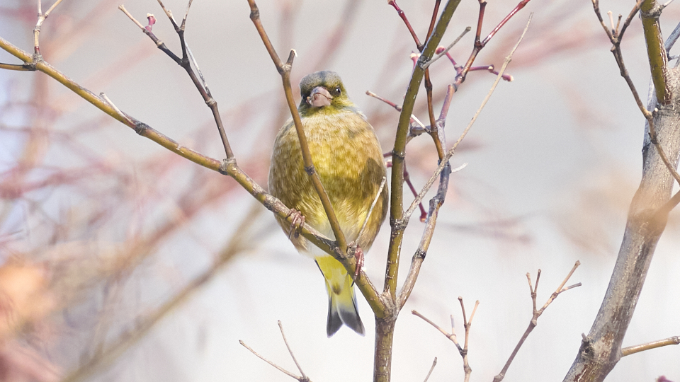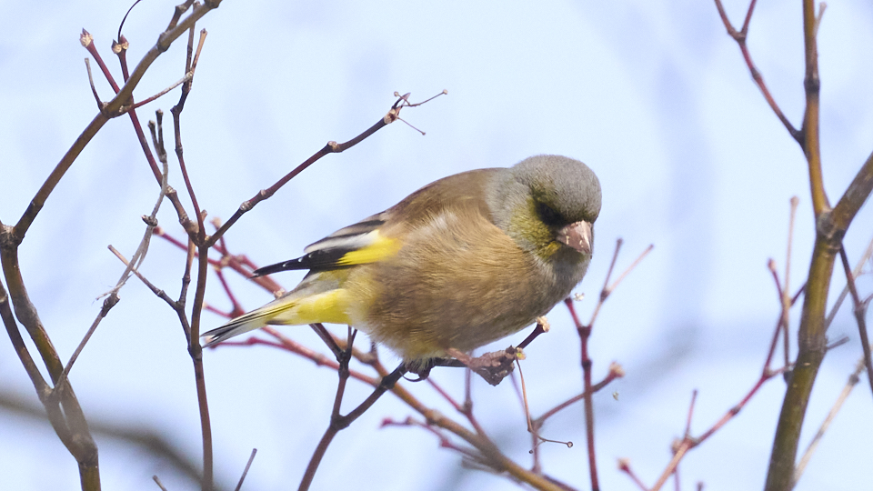 中島公園にカワラヒワが現れました。1月19日に撮って以来で、今年2回目の撮影です。
