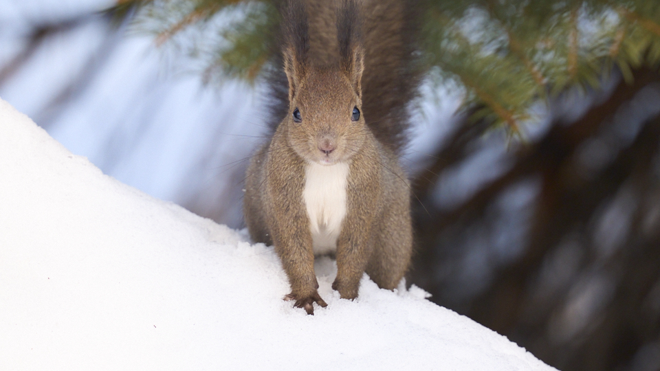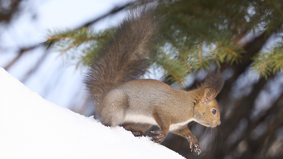 9:16 エゾリス林の中に消える