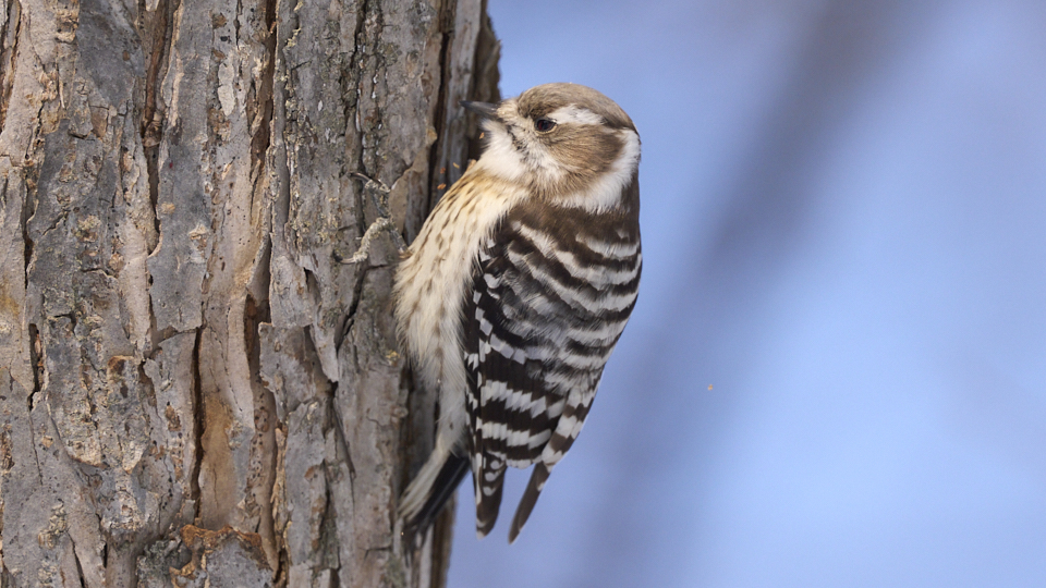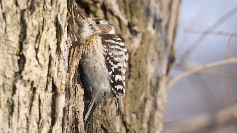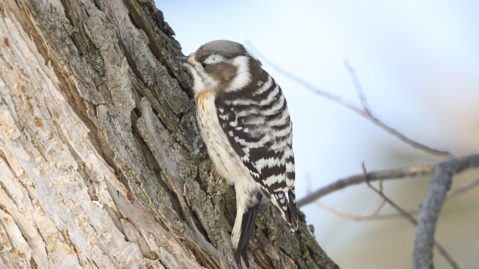 3月20日に撮影したコゲラですが、かろうじて赤い羽が見えます。