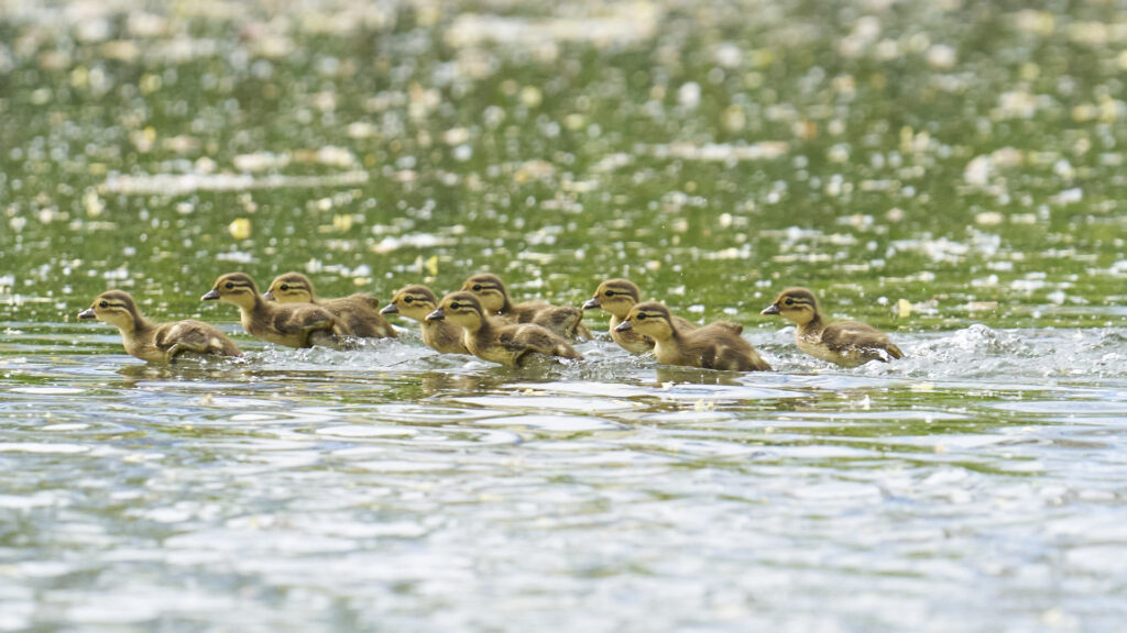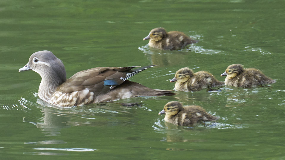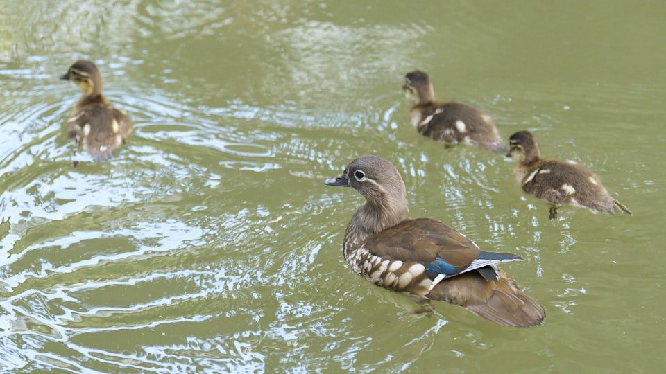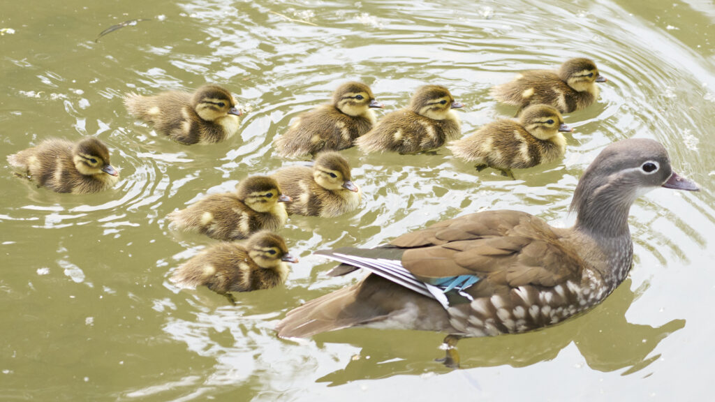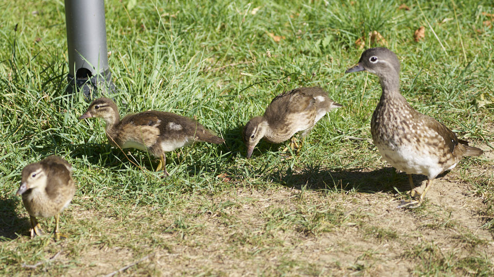 2025年6月1日〜8月4日、中島公園にオシドリ6組とマガモ2組のヒナが現れました。