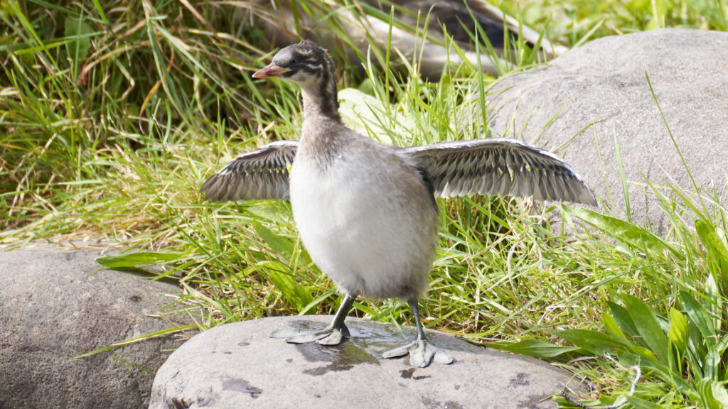 以前から中島公園に、カイツブリの成鳥や幼鳥を見掛けることがありましたが、ヒナを見ることはありませんでした。