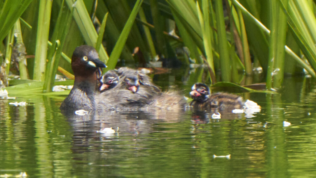 2024年春、初めてヒナを見掛けました。菖蒲池でヒナが孵ったのはこれが初めての様です。