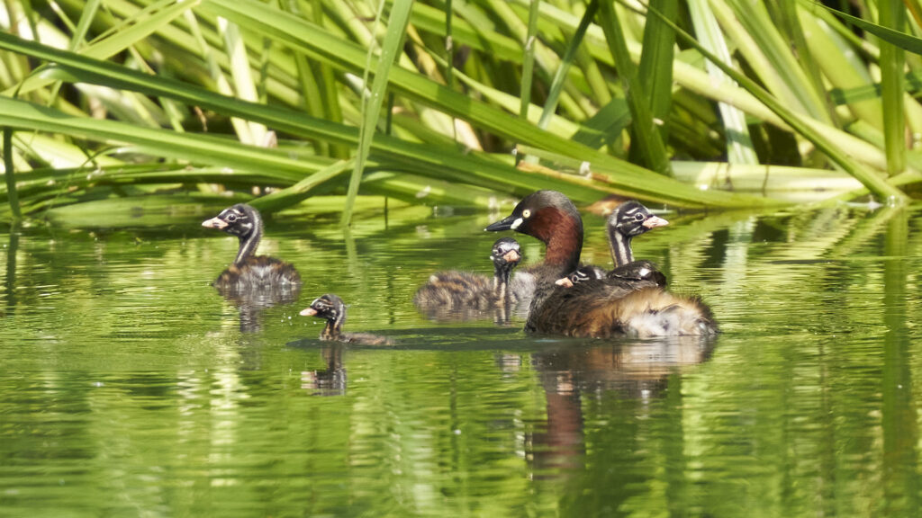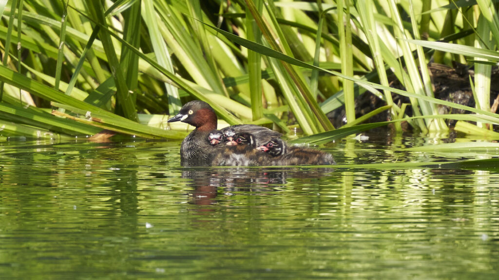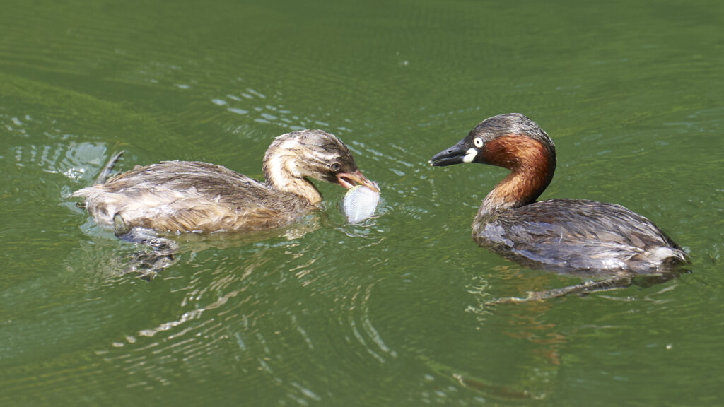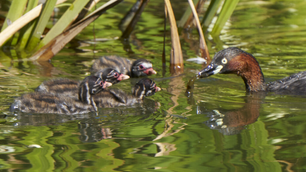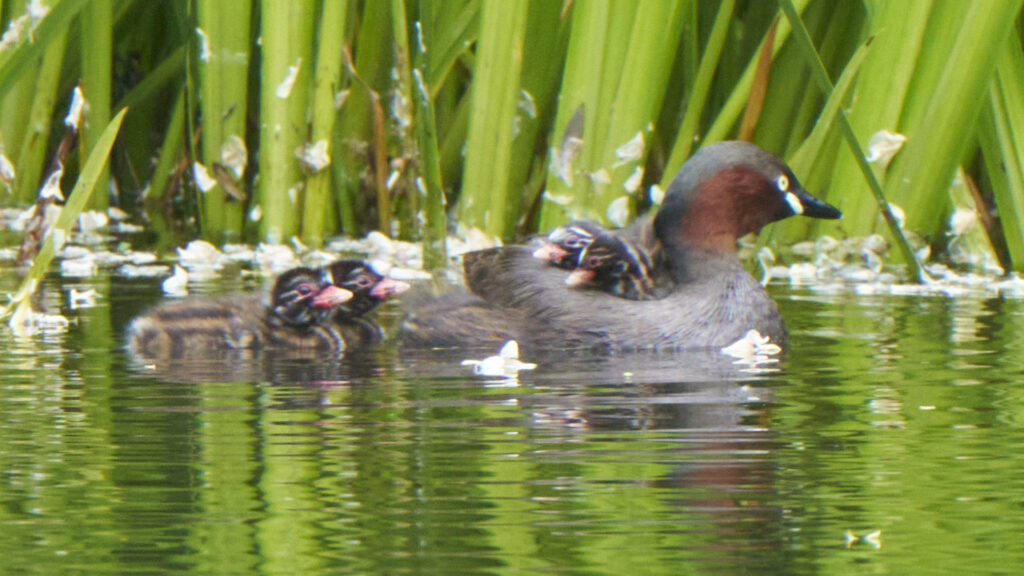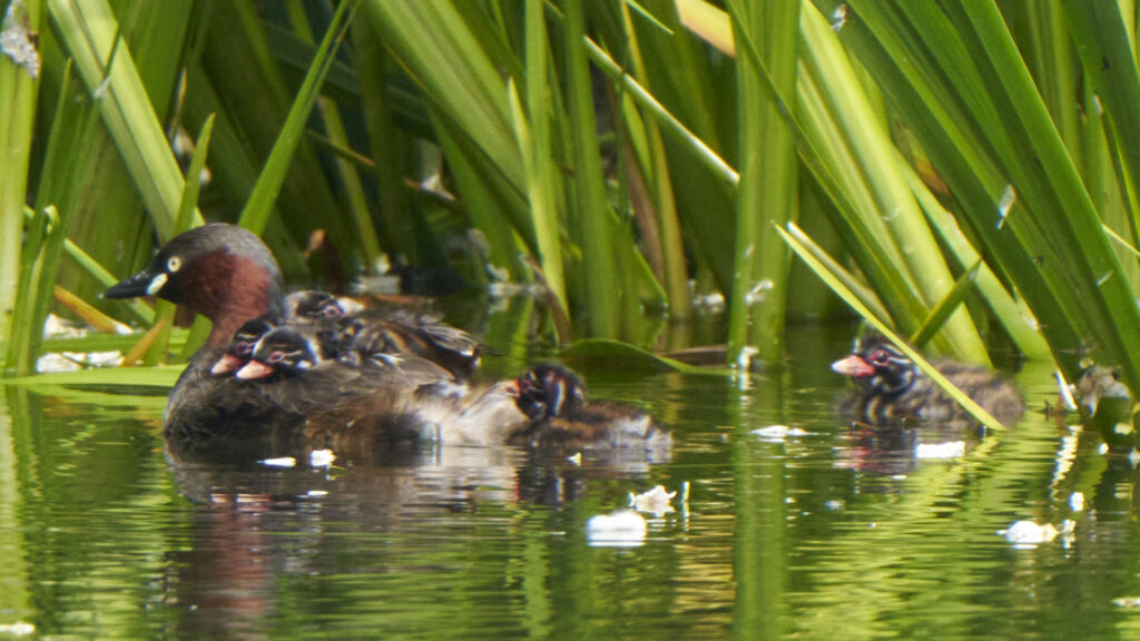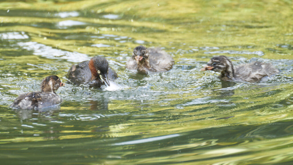 2024年、中島公園で見られたカイツブリの子育てです。菖蒲池でカイツブリのヒナが孵り、子育てするのは初めての様です。翌年は、菖蒲池にカイツブリが現れませんでした。