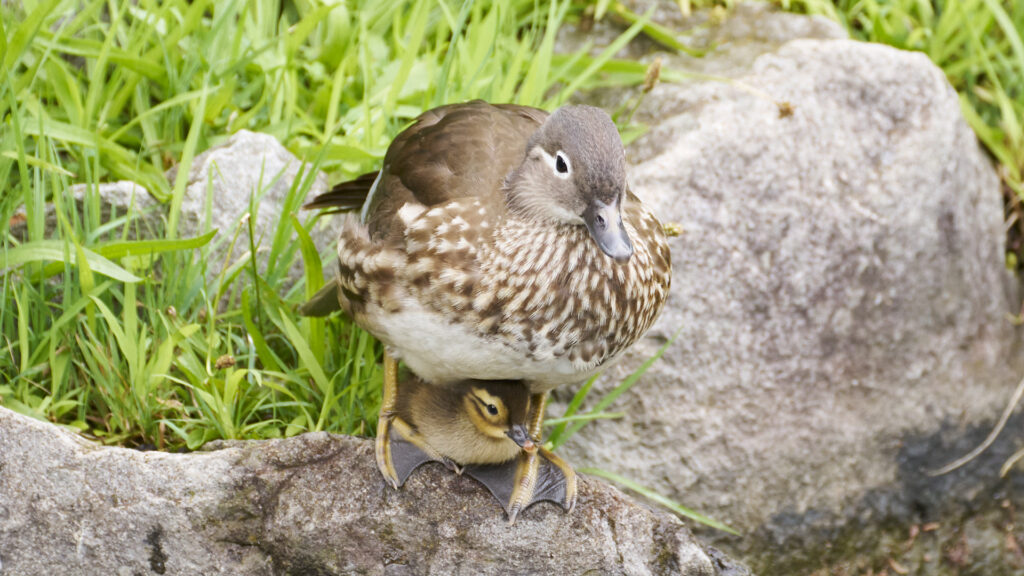 マガモとオシドリは、毎年子育てしています。