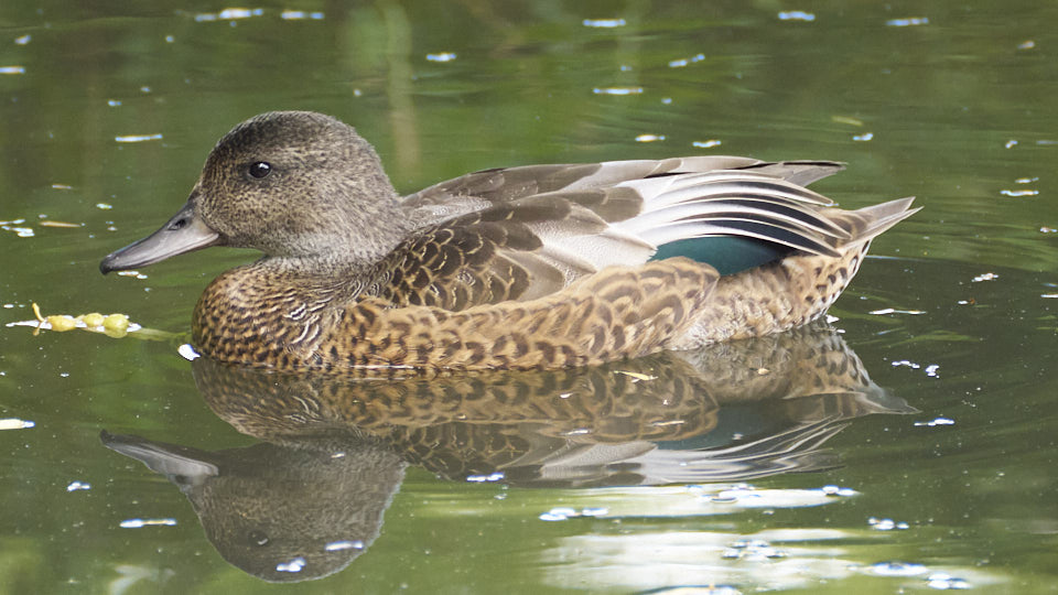 おそらく6月まで菖蒲池にいたヨシガモ(オス)だと思います。外見はメスに見えますが、エクリプスの様です。